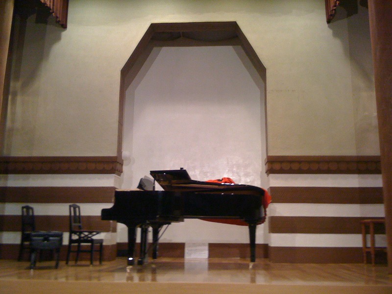 しかし天井高が10Mはあろうかというホールの中。ホールの奥行きと高さがほとんど同じと思われこれまでに味わったことのない音の反響を体験した。通常のホールで弾いた場合では味わえないような残響音の反射を感じることが出来た。私の感じでは通常では演奏者には感じることの出来ない客席で弾いたときのような残響音の感じを演奏するポジションで体感できるホールと見ました!弾いててうまくなった気さえする素晴らしいホールです。私も80席座れるホールを個人練習用に借りようと思いました。