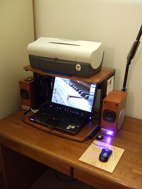 とりあえず長々と書きましたが結論としてはボール式マウスのユーザーなら間違いなく買いです。送料込で千円は安い!!見た目では伝わらないところに品質の良さをたくさん感じることが出来ます。但し光学式マウスの場合はパフォーマンスがややばらつく可能性があるのでちょっと注意したほうがいいかもしれません。でもお試しに買える値段設定ですし贈り物にも喜ばれるでしょう。ということで宣伝を兼ねてURLを下記に貼っておきます。あとこれはお約束ではありませんが私のPC環境とマウスパッドのアップの絵もサービスにて載せます。私のデスク環境はほとんど木目にて支配されています。この環境にはばっちり合いますね。