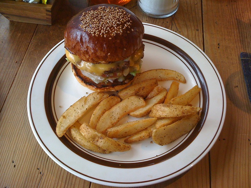 ここのハンバーガーはよくある厚めのパンに分厚い具がのってプレートに出てくるタイプ。でも大味そうな見た目とは裏腹に肉質がいい!しかも塩や味付け加減が絶妙でよくできたステーキを食べているような感じになる。モスバーガーがこの世で一番うまいと信じていた私はバカでした。ここのを食べるとハンバーガーがもっと崇高なジャンルの食べ物と思えます。ちょっとおおげさに書いたけどうまいです。