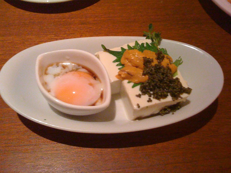 豆腐にうにが乗った方の料理の味は普通かな。このつぶつぶはキャビア風木の実とのこと。名前は忘れた。海鮮ものに限っては上をみたらきりがないので、居酒屋さんでおいしいところは、めったにない。酒蔵 神田っ子というアメ横にある居酒屋はCPと味と共にかなり良かった。あそこはもう一度訪れる必要がある。庶民的な内装と、ちょっとおばあちゃん家に遊びにきたようなにおいがしますが、味はかなりおいしかった気がする。一応リンクを貼っておくので気になった方は行ってみてください。